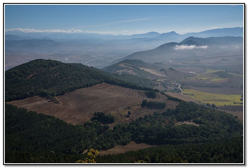 Y desde el buzón de Irulegi, se distinguen al fondo Beriain y la sierra de Aralar