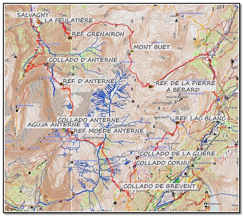 Anduvimos sin problemas, aunque yo un poco preocupado por el peso, pero ya el primer dia cambiamos a "Paso Alpes" y se acabaron los problemas. Mi otra preocupación eran mis preciosas rodillas pero se portaron estupendamente menos un dia pero no me preocupó porque les di bastante caña.