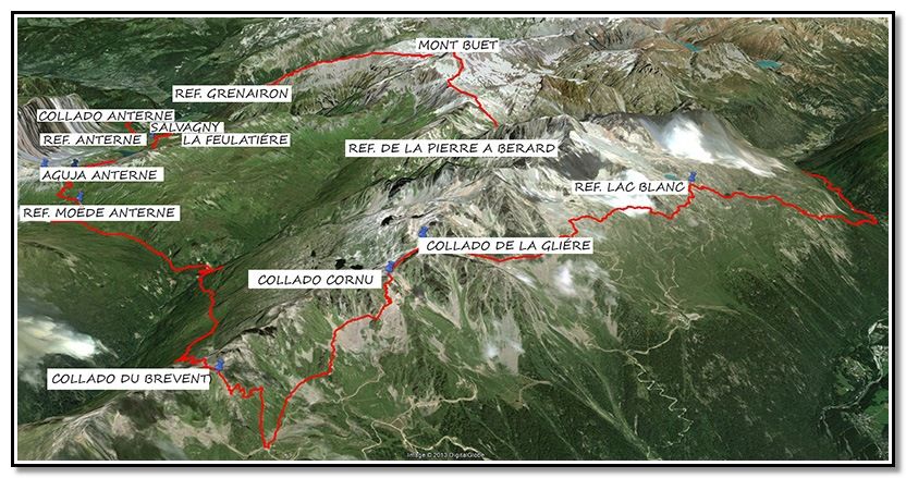 El valle y collado de Anterne con sus postes, por allí bajaríamos dentro de unos dias