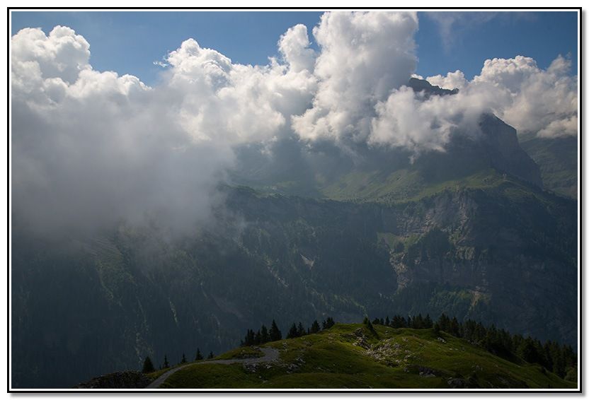 De repente aparecen los Fiz, muralla impresionante que, menos hoy, veremos casi todos los dias de distinto sitio, hoy toca nubes.