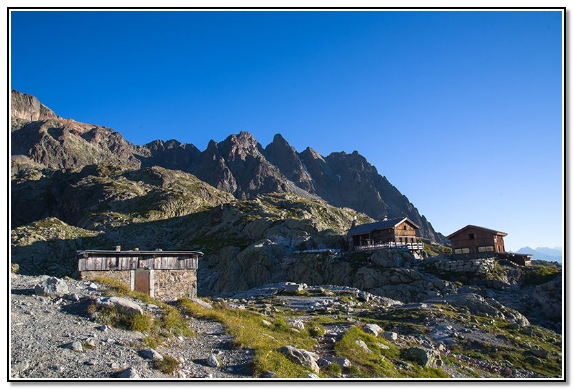 El refugio viejo y los nuevos de Lac Blanc, ya nos vamos, me despido de ellos