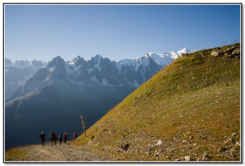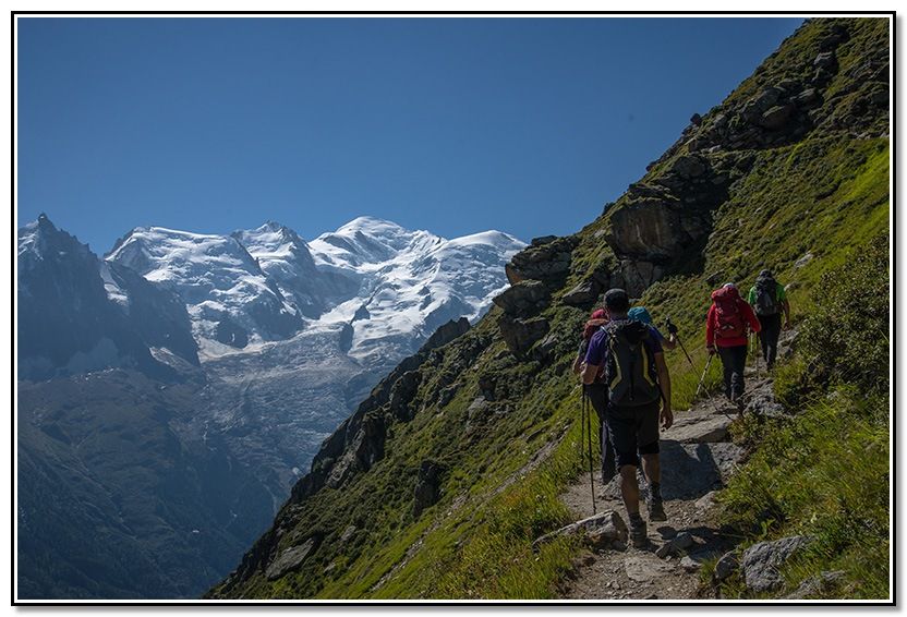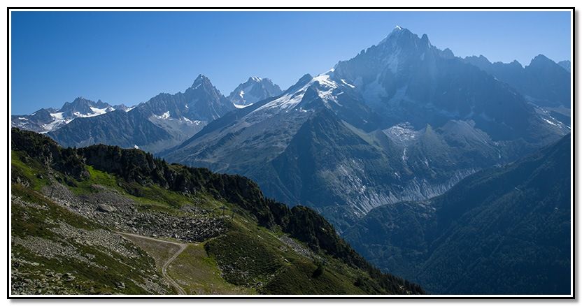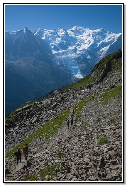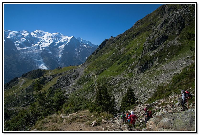 Seguimos el camino, vemos las Grandes Jorasses y la Aiguille du Plan