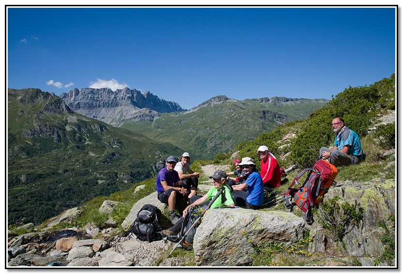 Paradita para ver Pointe Noire de Pormenaz, Refugio de Moëde Anterne, Chalets de Moëde, collado y Aigille de Anterne. Aigille y collado de Anterne, Tete de Moede. Los Fiz. Veíamos todo.