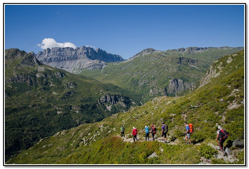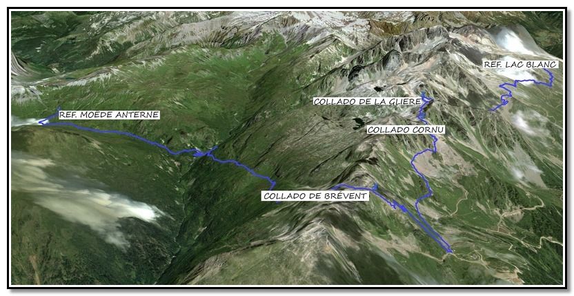 Una travesía preciosa, atravesamos varios collados, el de La Gliere, Cornú y Brevent, y bajamos a Pont d´Arlevé para subir al coqueto refugio de Moëde Anterne.