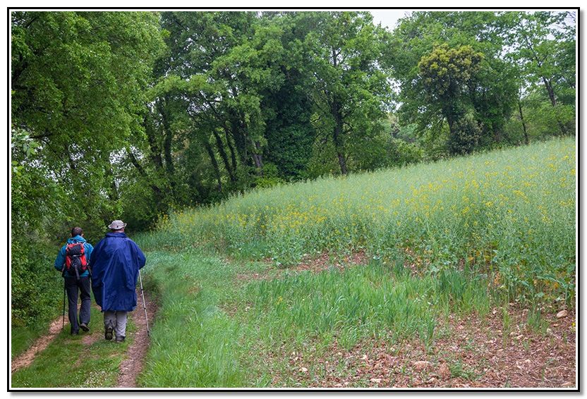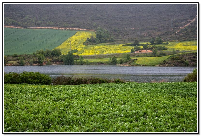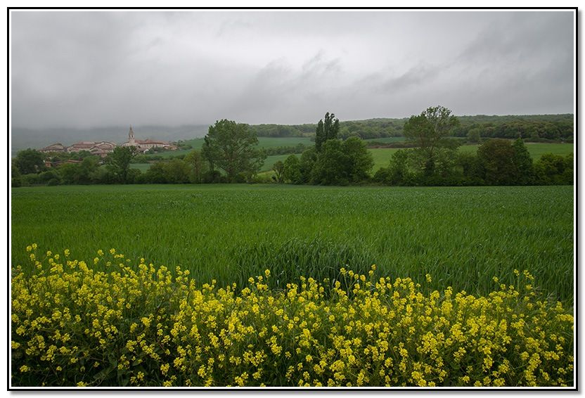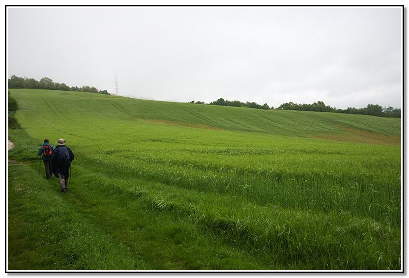Seguimos los caminos entre cultivos. Mucha niebla por allí.