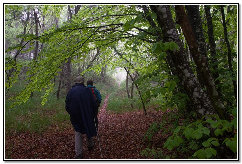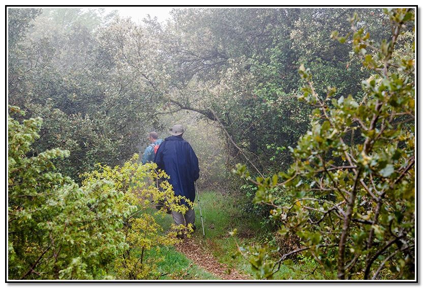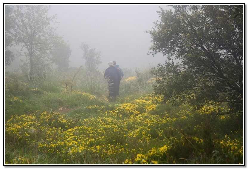 De todas formas el paisaje con este tiempo es muy bonito también. Nos mojamos más por la hierba y el brezo llenos de agua que por lo que nos mojaba la niebla.