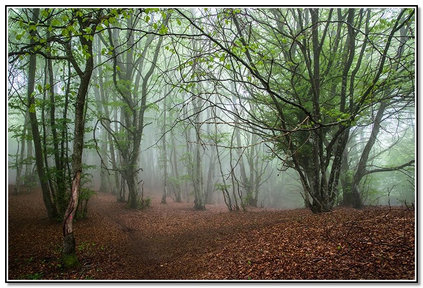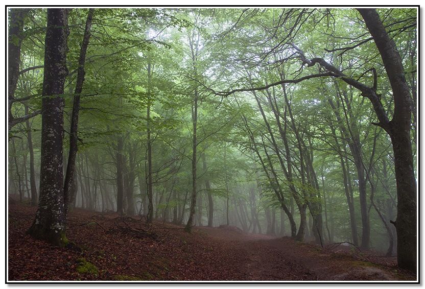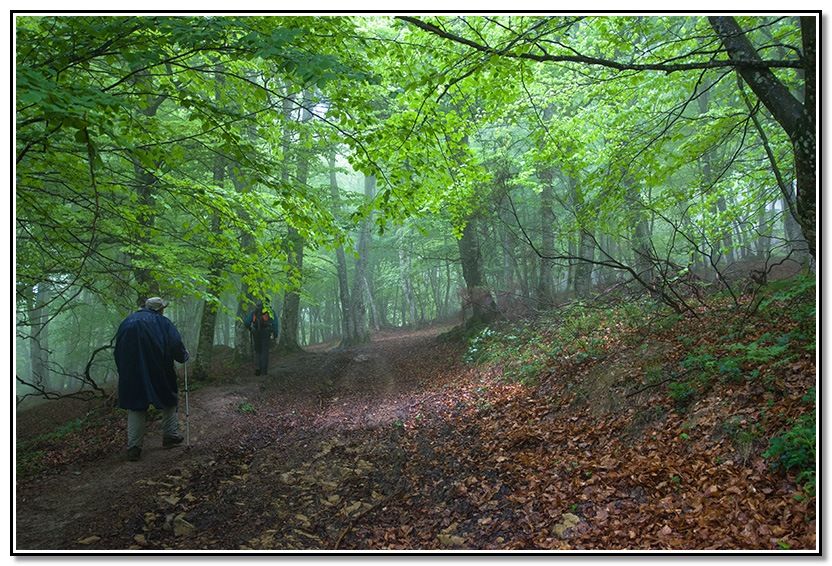 Salimos de Trebiñu y, depués de pasar los pueblos de Arrieta y Doroñu, subimos hacia la cima de Arrieta por un hayedo que la misma niebla lo hacía realmente bonito y fantasmal.