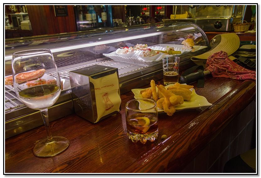 Aquí, para celebrarlo, nos comimos un estupendo pintxo y un traguillo de vino. Perfecto.