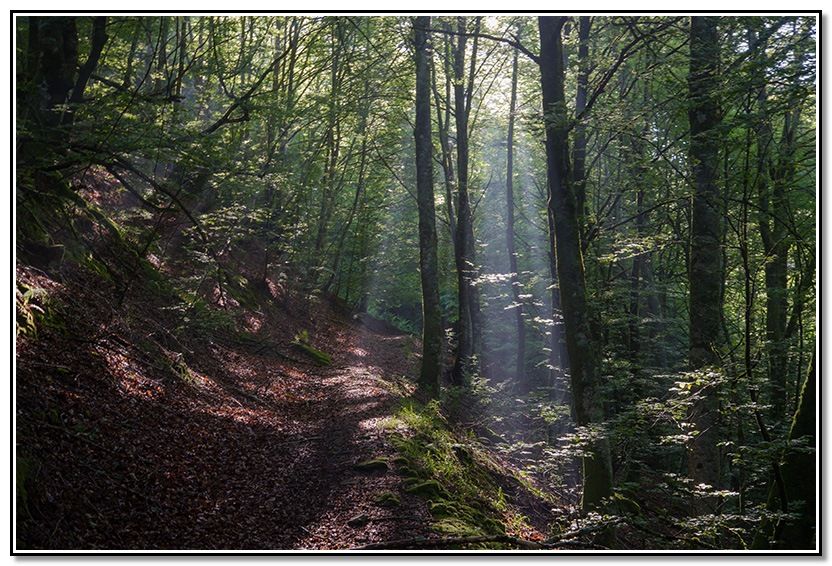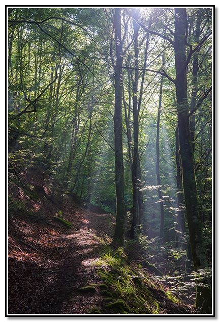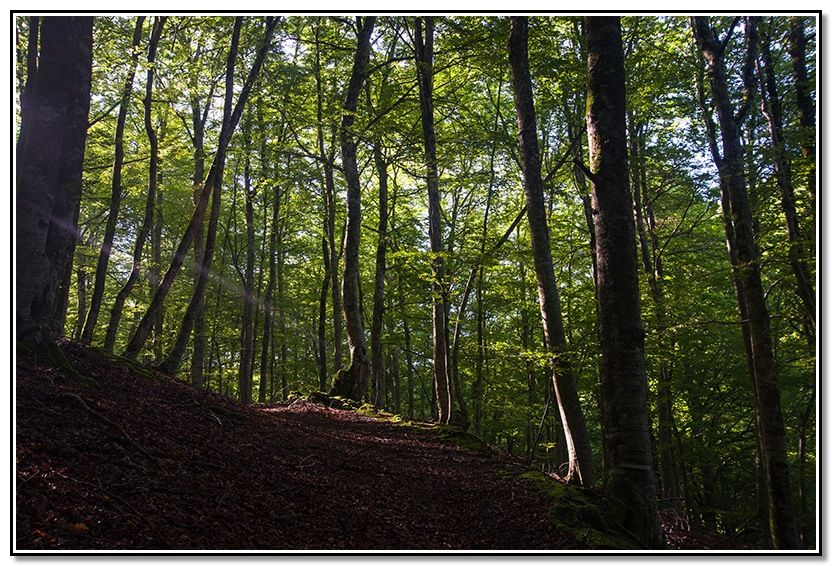 Ya dentro del bosque era una gozada, el sol se colaba entre los arboles, cambios de tonos, luces, una maravilla.