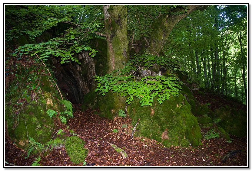 Con una mañana estupenda salimos de este bonito pueblo por un camino, Irumugetako bidea, para adentrarnos en un frondoso hayedo, que a veces estaba totalmente oscuro.