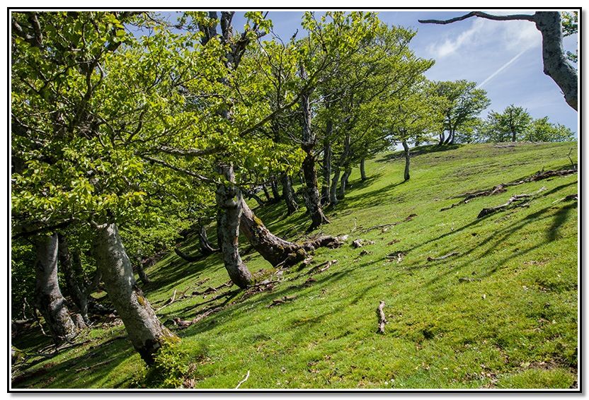 Seguimos hacia la loma de Zuriain, ésta me costó algo, ya hacía calor, había que cogerla con paciencia, e intentando aprovechar la sombra de las hayas.
