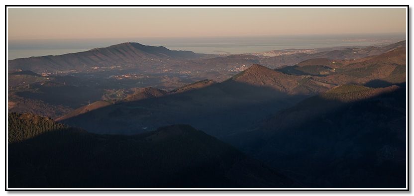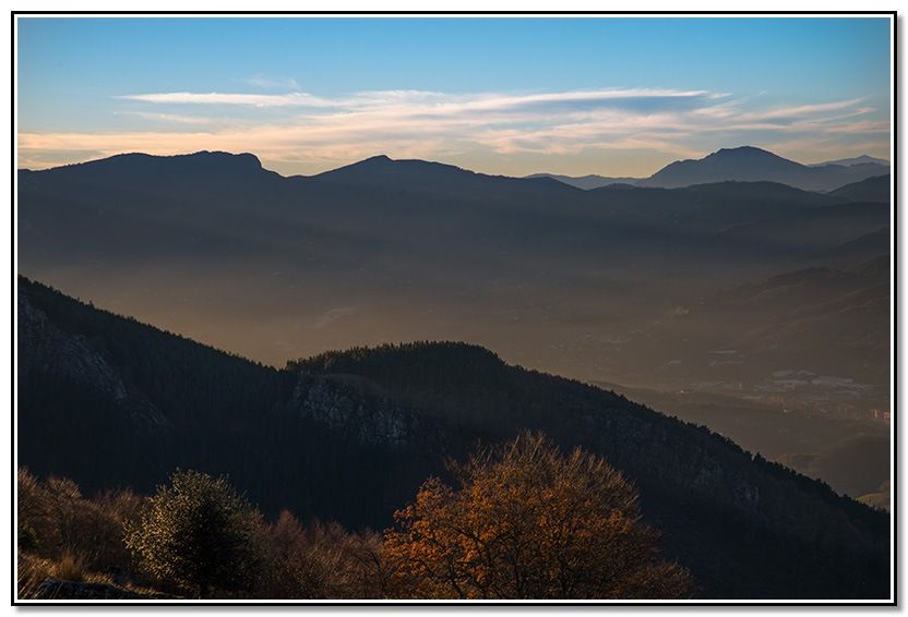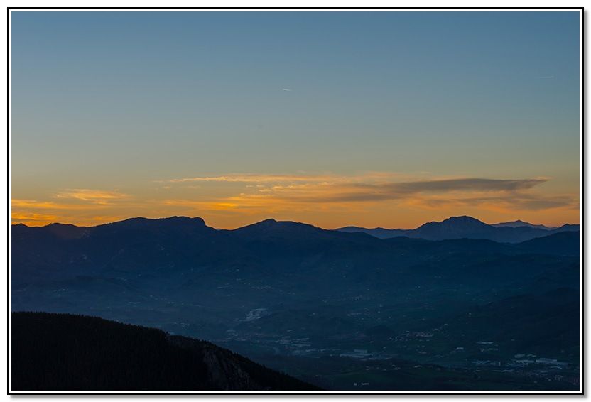 El sol ilumina parte del valle, en Ernio e Izarraitz todavía están de dia.