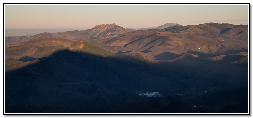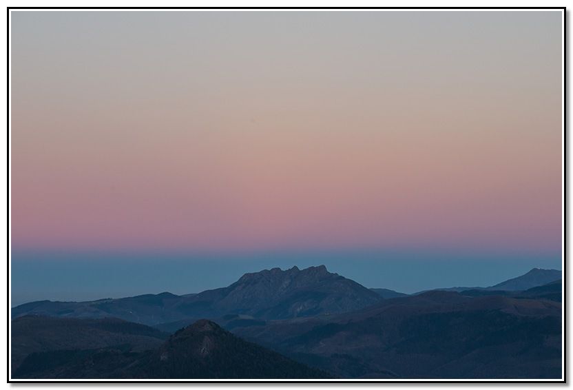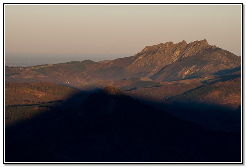 Media vuelta, la sombra de la cima iba oscureciendo Urdaburu pero todavía Aiako Harria estaba iluminado y cambiaba continuamente de colores.