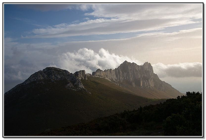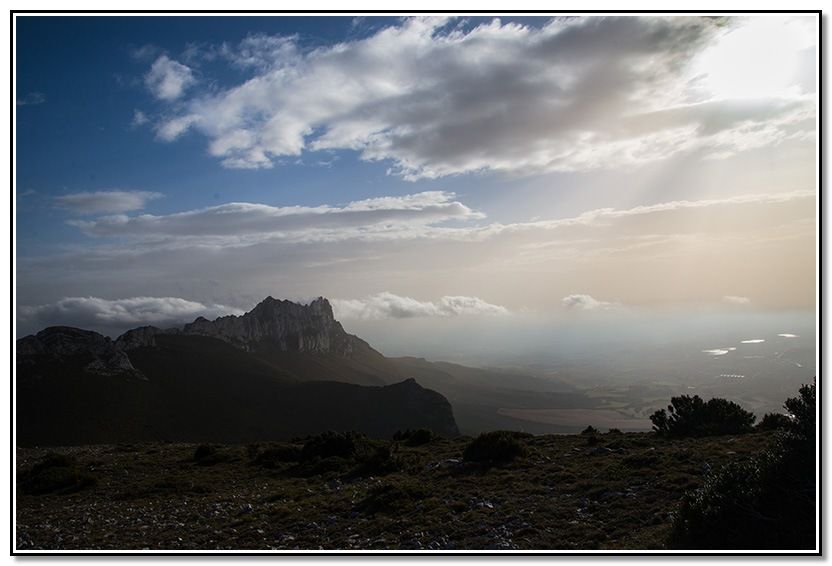 En seguida nos ponemos en la cima y vemos el impresionante paisaje: Recilla y la preciosa cresta de Palomares. El viento sur mueve las nubes a su antojo y continuamente cambian las luces.