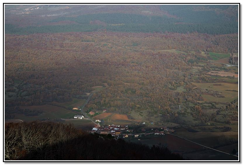 Desde la cima se distinge Pipaon con la sombra del mismo monte.