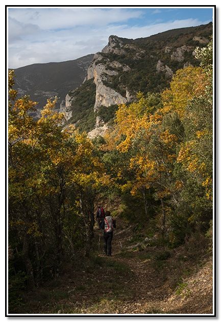 Una vez en el collado nos dirijimos a Cervera por un senderito entre el boj.